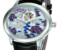 梵克雅寶午夜東方花園陀飛輪鉑金腕表在珍貴寶石的烘托下,面盤上恬靜神秘的東方園林通過兩種琺瑯技法呼之欲出。蛋面磨光琺瑯和大明火琺瑯相輔相成,勾繪出東方園林的迷人神韻。琺瑯技藝要求超高的溫度和卓越的工藝。這款限量版鉑金腕表搭配鱷魚皮表帶,僅售8枚。表殼:鉑金材質(zhì),圓形表殼,藍(lán)寶石水晶底蓋,可顯示機(jī)芯運(yùn)轉(zhuǎn)。表盤:大明火和蛋面磨光琺瑯,鑲嵌鉆石、藍(lán)寶石,棒形指針,不設(shè)時(shí)間刻度。