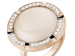 (Cruise)大戒指系列,以18K粉紅金或白金制成,鑲以圓形切割之美鉆和1顆圓拱形切割之茶晶。大型的圓拱形切割戒指,大氣而又不失優(yōu)雅,發(fā)出令人難以抗拒的光芒。此次推出的全新大戒指系列選用Chaumet
