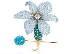 世界著名設(shè)計(jì)大師讓史隆伯杰將大自然中的神奇化作栩栩如生而又色彩華麗的珠寶珍品,贏得了全世界的普遍贊譽(yù),榮膺無(wú)數(shù)國(guó)際獎(jiǎng)項(xiàng)。蒂芙尼在紐約和巴黎的珠寶師遵照史隆伯杰的原創(chuàng)圖樣,精心雕制了鉆石和祖母綠鑲嵌的蘭花胸針以及用紅碧璽和12.16克拉的全天然黃色藍(lán)寶石鑲嵌的花蕾胸針。