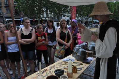 6月30日,一些學(xué)生在比利時首都布魯塞爾街頭觀看古代郎中和他的器具。當天,布魯塞爾情景再現(xiàn)歐洲中世紀的世俗生活,以獨特方式慶祝比利時即將擔任歐盟輪值主席,并迎接暑假的到來。