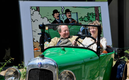 比利時一年一度的“丁丁”收藏日近日在新魯汶舉行,一對老夫婦興致勃勃地坐上“丁丁”牌敞篷車。風(fēng)靡世界的《丁丁歷險記》是連環(huán)畫王國比利時畫家埃爾熱的作品,全套24集,迄今共出版發(fā)行上億冊,被翻譯成包括中文在內(nèi)的80多種文字。