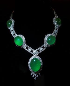 靈活地分拆或組合成多樣款式,無論獨處時或是群體時都綻放光芒,可謂粒粒天皇巨星。 整套首飾寓意在一個大家族里,各成員除可獨當一面、各自發(fā)揮外,更能在聚首一堂時,互相依傍,融洽相處,彰顯大宅門家道興旺氣派,這套產(chǎn)品的誕生是基于天、地、人的配合。整套首飾系列展現(xiàn)天然翡翠碧綠通透、亮麗晶瑩之美,散發(fā)奪目耀眼的光芒,盡顯高貴優(yōu)雅的氣派,屬難得一見的稀世極品。