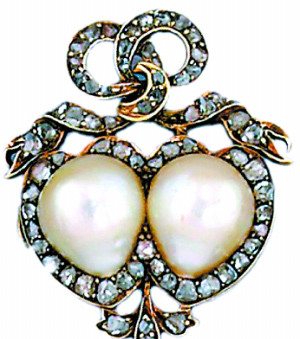 雙心玫瑰鉆石珍珠胸針7月倫敦拍賣會1000英鎊成交
