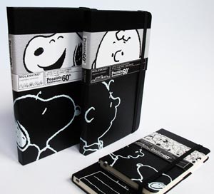 《花生漫畫》一向極受歡迎,角色之間的有趣對(duì)話是不可或缺的靈魂。 本著這個(gè)特色,口袋筆記本的封面便呈現(xiàn)出角色之間的互動(dòng)和交流。 《花生漫畫》最具代表性的角色亦會(huì)個(gè)別地出現(xiàn)在大型筆記本封面上,包裝紙條分別印上兩個(gè)主要角色史努比和查理-布朗的特寫,筆記本上以白色刻上人物的側(cè)面。在兩本Moleskine紙條和封面上們都會(huì)印有“Peanuts