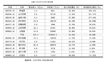 海通證券對(duì)白酒上市公司的中報(bào)進(jìn)行分析稱,上半年白酒上市公司收入利潤(rùn)合計(jì)增速維持高位,主要在于2009年上半年基數(shù)較低:13家白酒上市公司上半年實(shí)現(xiàn)收入257.5億,同比增長(zhǎng)34%,其中一季度收入增長(zhǎng)35%,二季度收入增長(zhǎng)33%,上半年實(shí)現(xiàn)凈利潤(rùn)83億,同比增長(zhǎng)30.7%,其中一季度凈利潤(rùn)同比增長(zhǎng)28%,二季度凈利潤(rùn)增長(zhǎng)34.5%。 報(bào)告預(yù)計(jì)今年下半年白酒企業(yè)收入將逐步放緩至平穩(wěn)狀態(tài)10%左右,但下半年合計(jì)凈利潤(rùn)增速仍將維持高位,同比增長(zhǎng)將達(dá)約35%左右。預(yù)計(jì)全年13家白酒上市公司合計(jì)收入和凈利潤(rùn)增速分別為19%和29%左右,這個(gè)增長(zhǎng)速度仍舊足以讓白酒股獲取超額收益。從6—7月份高檔白酒終端零售價(jià)的普漲來(lái)看,估計(jì)很多白酒公司三季度的發(fā)貨量將得到可靠保障,經(jīng)銷商補(bǔ)庫(kù)存的過(guò)程可能將一直延續(xù)到明年春節(jié)。 海通證券認(rèn)為,上半年白酒企業(yè)凈利潤(rùn)增速低于收入增速主要是因?yàn)橄M(fèi)稅率提高了2—3個(gè)百分點(diǎn),但下半年翹尾因素逐步減弱,凈利潤(rùn)增速將逐步恢復(fù)。中國(guó)政府從2009年下半年開(kāi)始提出從嚴(yán)增收消費(fèi)稅,而公安部門也在去年底從嚴(yán)打擊酒駕,并于今年4月份嚴(yán)格規(guī)范交通法。中長(zhǎng)期來(lái)看,無(wú)論是酒精飲料的消費(fèi)稅,還是其他行政、法律,對(duì)酒精飲料消費(fèi)的限制力度都會(huì)提高。中長(zhǎng)期來(lái)看,“少喝酒、喝好酒”是大勢(shì)所趨,白酒業(yè)中長(zhǎng)期產(chǎn)品結(jié)構(gòu)調(diào)整仍將深化。