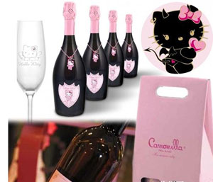 (Hello Kitty) 公司和一家葡萄酒商合作,推出了瓶身貼著凱蒂貓 (Hello Kitty) 肖像和掛著它吊墜的葡萄酒。沒(méi)有嘴巴的凱蒂貓 (Hello