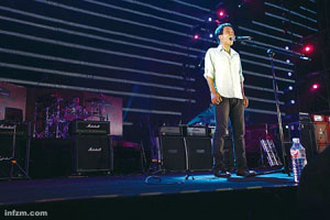每位入場觀眾必須通過嚴(yán)格的安檢,從各種液體到打火機都不得帶入場內(nèi)——就像登機一樣。 大型演出設(shè)置安檢并不新鮮,新鮮的是參加演出的13支樂隊在演出前一天接到通知,演出當(dāng)晚結(jié)束后,都不得離開,必須集體接受尿檢。如果集體尿檢得以實施,將開世界搖滾史的先河。 19∶25,舞臺上的大屏幕開始播放視頻,這是一場決不能拖延時間的演唱會——工體要求10點半前必須交還場地,要確保四萬名觀眾坐末班車、末班地鐵回家,北京的公交和地鐵相應(yīng)延遲半小時,這樣的舉措,在北京并不多見。