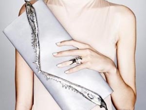 Dominic Jones的首飾系列風(fēng)格一直游離在自然和優(yōu)雅時(shí)尚之間,但也許它那瘋狂的外表會嚇走很多人。這次的最新系列中犀牛角的戒指,鯊魚鋸齒狀的手袋裝飾邊,短吻鱷頜齒的夸張手鐲,都是本季的最大亮點(diǎn)。