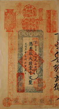 這張紙幣是光緒三十年河南豫泉官錢局第一版流通紙鈔,目前僅見(jiàn)獨(dú)此一張,品相完好,原始印章非常清晰,色澤鮮明,字跡清新,其先進(jìn)實(shí)用的防偽功能更是別具一格,被公認(rèn)為中國(guó)清代紙鈔中的絕世大珍。目前,這件藏品已正式入駐中國(guó)印鈔造幣博物館,向參觀者展示中國(guó)近代印鈔的發(fā)展歷史。