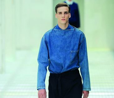 Kawakubo,兩位設(shè)計師更相繼對牛仔,這種最難掌控的棉質(zhì)面料產(chǎn)生了濃厚的興趣,Prada用船領(lǐng)牛仔上衣搭配及膝裙褲,原色牛仔與靛青色牛仔形成了色澤上的鮮明反差。