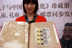今年是孔子誕辰2561周年,中國郵政日前發(fā)行《孔廟、孔府、孔林》郵票一套三枚,中國集郵總公司同步發(fā)行《孔子與中國傳統(tǒng)文化》大型紀(jì)念珍藏冊(cè),全球最大發(fā)行量為兩萬冊(cè)。