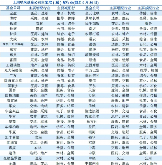 圖1:上周各行業(yè)基金平均增配強(qiáng)度(截至9月30日)