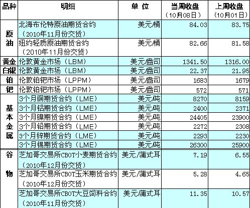 國(guó)際大宗商品期貨價(jià)格明細(xì)表