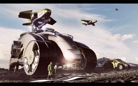 在沙漠中尋找適于建立人類殖民地的所在無疑是一項艱巨任務(wù),但如果有“沙漠螳螂”幫助,情況便大不一樣。這款交通工具外表怪異而粗曠,利用其獨特的運動系統(tǒng)征服任何類型的地形。此外,它還可以用于拖拉裝載原料的貨車和乘客,從一個居住地前往另一個居住地。