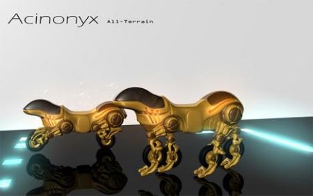 Acinonyx概念車融合了動物與機器的諸多特征,是一種全地形車,即使遭遇最惡劣的地形也能輕松應(yīng)對。這款概念車在設(shè)計上受動物影響更多而不是機器,令人著迷的動物造型便足以說明這一點。