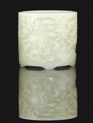 小型精品白玉現(xiàn)身拍場后總是取得驚人的成績。2008年乾隆帝御寶交龍鈕“乾隆御筆”白玉璽,曾以6338萬港元成交,創(chuàng)造了白玉世界拍賣紀(jì)錄。而早前香港佳士得舉辦的拍賣會上一件清乾隆《白玉鶴鹿同春筆筒》也以5408.75萬港幣成交。