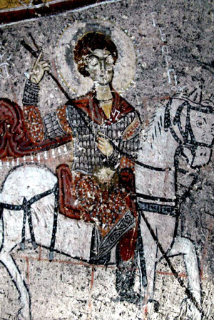 戈雷梅露天博物館,一個(gè)個(gè)巖錐竟然就是教堂。巖錐里面被巧妙地掏空,基督教士們把洞窟內(nèi)的巖石鑿穿,建起柱子和拱門,使之呈現(xiàn)出基督教堂特有的建筑特點(diǎn)。雖然已過去十幾個(gè)世紀(jì),但得益于這里的自然環(huán)境干燥少雨,教堂內(nèi)部的大部分壁畫色彩依然鮮艷,特別是蘋果教堂、黑暗教堂和紐扣教堂,里面的壁畫保存得相對(duì)較好。