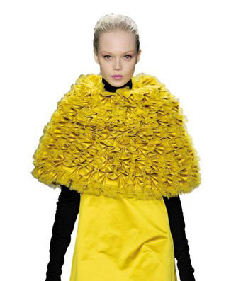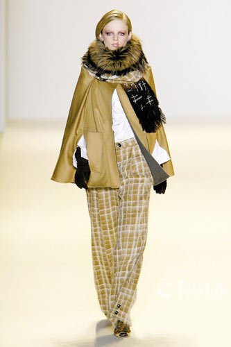 2010年秋冬的T臺趨勢在熱捧斗篷這一復古潮流,風格多變,長短不一、款式別致,煥發(fā)出有別傳統(tǒng)的更濃郁韻味,也許有人覺得很搞怪,但優(yōu)雅的作品也并不少見。