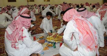 參加婚禮的人都來自于同一部落,因?yàn),新郎和新娘必須是同一部落。由于部落?nèi)幾乎每天都有結(jié)婚的人,因此,夜深后參加婚禮成為沙特人的主要夜生活方式之一。