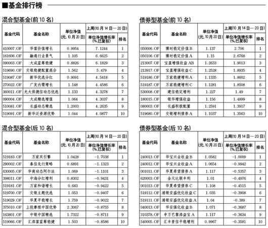 混合型基金排行榜[2010-10-22]