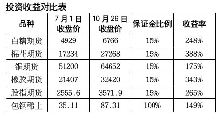 過去十年投資房地產(chǎn),收益率可能會超過5倍;投資黃金,也可以獲得3倍以上的收益。在新的十年里,身處世界經(jīng)濟(jì)增速最快的國度,我們該選擇哪類投資品,再搭一班財(cái)富快車呢?筆者認(rèn)為,滬深300股指期貨或許就是一種不錯(cuò)的選擇。投資一手股指期貨的多單(開戶保證金50萬元),上漲1個(gè)點(diǎn)可獲300元收益,如果滬深300指數(shù)上漲1000點(diǎn),那你就可以獲得30萬元的利潤。