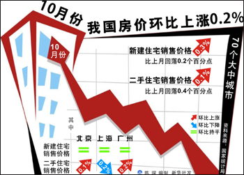 數(shù)據(jù)顯示,10月份,70個大中城市商品住宅銷售價格上漲11.9%,其中普通住宅銷售價格上漲11.0%,高檔住宅銷售價格上漲14.8%。與上月相比,商品住宅銷售價格上漲0.3%,其中普通住宅銷售價格上漲0.4%,高檔住宅銷售價格上漲0.2%。業(yè)內(nèi)普遍認(rèn)為,房價依舊在高位運行,紛紛預(yù)測年內(nèi)價格松動的可能性相對較小。