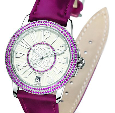 打破傳統(tǒng)嗎?不可否認(rèn)的確如此。符合現(xiàn)代潮流嗎?絕對正確。專為女性設(shè)計嗎?度身定做。該款寶珀女士表典藏系列擁有極其大膽和前衛(wèi)的表緣設(shè)計,帶扭索邊飾的珍珠母貝表盤,自然而華麗。寶珀立該意識到此表奇異的特征與蓮花難以捉摸的自然特性相互關(guān)聯(lián)。不規(guī)則的珍珠母貝表盤的獨創(chuàng)設(shè)計加上醒目的阿拉伯?dāng)?shù)字,使其更奪人眼目,扭索飾圖形更是錦上添花。兩行精巧鑲嵌的鉆石使經(jīng)典的雙層表圈更顯生機(jī)盎然。卓越的BLANCPAIN(寶珀)Cal.1150機(jī)芯在“蓮”珠寶款中意味著一種溫柔的時間,自動上弦,中央時針、分針、秒針,6點鐘位置日期顯示,表背藍(lán)寶石水晶透明底蓋,可以窺見組成機(jī)芯的188個零部件,日內(nèi)瓦條紋打磨、點刻、倒角、拋光、雕版,應(yīng)有盡有,事實上在BLANCPAIN(寶珀)的所有機(jī)芯中,這些工序都秉承制表業(yè)的優(yōu)良傳統(tǒng)以嚴(yán)謹(jǐn)?shù)氖止に嚰夹g(shù)完成。這些手表的獨特個性在女裝手表中得到了它們應(yīng)有的贊譽,這也證明了一點,獨特的個性也能夠與卓著聲望以及女性特質(zhì)完美地匹配。