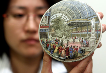 “世博牽手奧運(yùn)110周年典藏珍品專場(chǎng)拍賣會(huì)”匯集了百余件拍品,頗多亮點(diǎn)。其中,一組1851年第一屆倫敦世博會(huì)版畫(huà)顯得尤為引人注目。這組刊載于倫敦新聞畫(huà)報(bào)的版畫(huà)重現(xiàn)了當(dāng)時(shí)的盛況。畫(huà)面中身著清朝官服的“廣東希生老爺”、英國(guó)女王接見(jiàn)來(lái)自上海的絲綢商徐榮村一家、中國(guó)商船上的武術(shù)表演,以及出現(xiàn)在獲獎(jiǎng)名單中的“榮記湖絲”,記錄了中國(guó)人首次參與世博會(huì)的歷史。