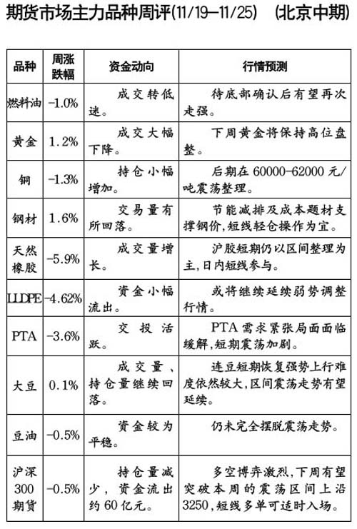期貨市場主力品種周評[11.12-11.18]
