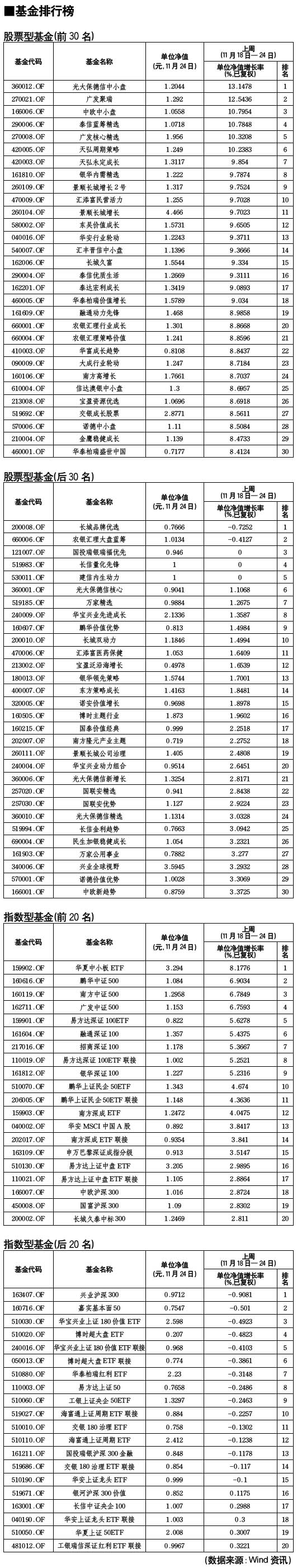 股票型基金排行榜[2010-11-26]