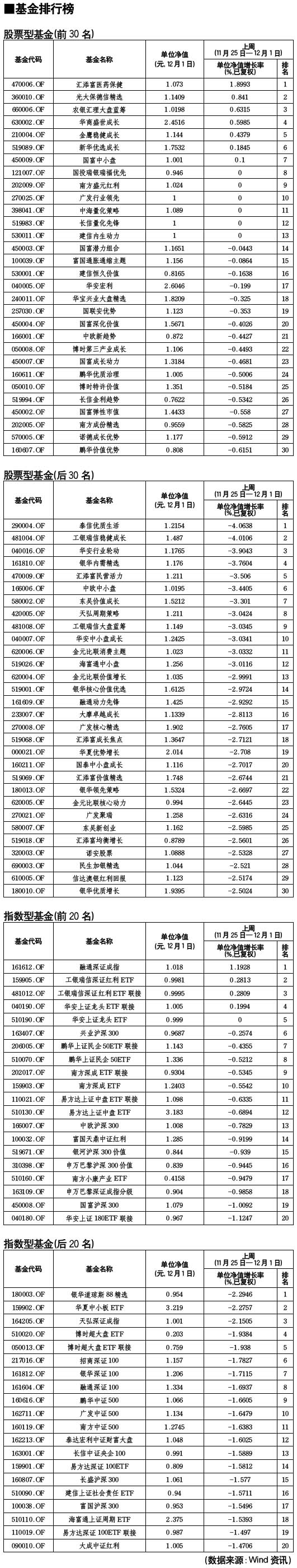 股票型基金排行榜[2010-12-03]