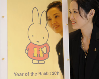 日本田中貴珠寶公司近日推出了一款2011年米菲兔日歷用六千克黃金制成,售價約為66萬美元。圖為日本田中貴珠寶公司的員工在東京展示這款米菲兔日歷。