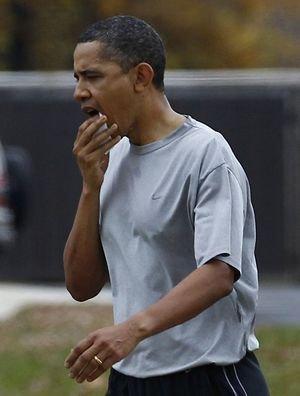 這就是發(fā)生在11月26日華盛頓麥克奈爾堡軍事基地的一幕。從圖片上可以看出,奧巴馬身著運動衣,手拿紙巾壓著嘴巴,在數(shù)名保鏢簇擁下,走上了停靠在球場邊不遠的總統(tǒng)專車。記者透過車玻璃,拍到了一張奧巴馬坐在車內(nèi)的照片,奧巴馬看似神情沮喪。