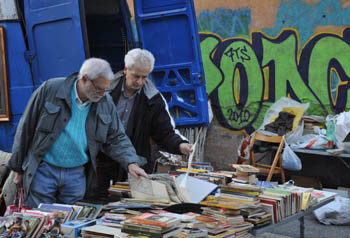 不會(huì)意大利語(yǔ)也沒(méi)關(guān)系,總有討價(jià)還價(jià)的辦法,尤其在波爾泰塞城門(mén)“跳蚤市場(chǎng)”的古董區(qū)。古董商販們聚集在市場(chǎng)靠中央的空地上,這些大多兩鬢斑白的老人家,售賣(mài)可能比他們年紀(jì)還大的古舊物品,諸如1835年的書(shū)籍、1928年的意大利報(bào)紙、1947年產(chǎn)的電視機(jī)、20世紀(jì)初的留聲機(jī)、二戰(zhàn)時(shí)期的勛章等等。