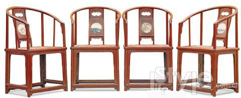 清早期 黃花梨嵌大理石圈椅四只