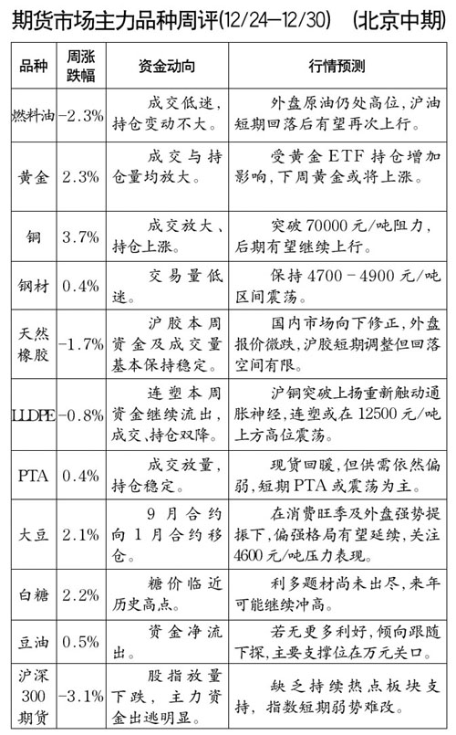 期貨市場主力品種周評(píng)[12.24-12.30]