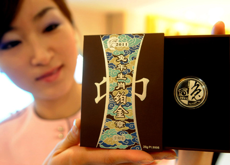 當天,中國金幣總公司在京發(fā)行限量版兔年鉑金紀念章。據(jù)介紹,該套產(chǎn)品包含5g,10g,20g三種規(guī)格,均以99.95%鉑金鑄成。每種規(guī)格的發(fā)行量分別為1800、1200、600枚。鉑金紀念章的正反面圖案為線兔造型,采用高浮雕與鏡面及噴砂工藝制作,具有一定的收藏價值。新華社發(fā)