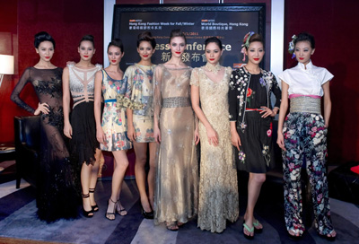 香港貿(mào)發(fā)局日前舉行香港時(shí)裝節(jié)及香港國際時(shí)尚薈萃新聞發(fā)布會(huì),公布活動(dòng)詳情。本次時(shí)裝盛會(huì)將于1月17日至20日舉行。圖為模特在新聞發(fā)布會(huì)上進(jìn)行時(shí)裝精選預(yù)展。