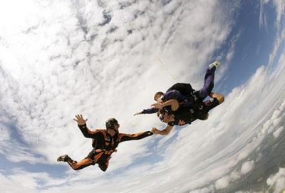 說(shuō)到這里,童邵開始了滔滔不絕的自夸,“如果沒(méi)有膽量和信心的話,玩的時(shí)候也會(huì)冒虛汗的。我第一次跳‘AFF’的時(shí)候就是一背的冷汗啊!闭f(shuō)到這里,童邵哈哈大笑起來(lái),“當(dāng)然,后來(lái)的時(shí)候就好多了。當(dāng)打開傘之后,那種突然之間失重的感覺(jué)與穿行云間的美妙是無(wú)法描述的啦!