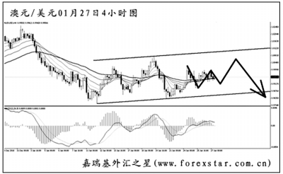 ▲澳元兌美元在區(qū)間內(nèi)震蕩運(yùn)行,圖中均線系統(tǒng)被反復(fù)穿越,客觀趨勢橫盤。從大級別圖形上看,此次調(diào)整為前方高位下跌的次要節(jié)奏,只要澳元不向上有效突破區(qū)間上沿,則后市繼續(xù)展開大幅下挫的概率較大。在突破前,建議投資者先行觀望為好。