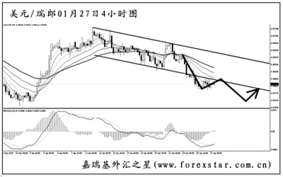 ▲美元兌瑞郎逐步下行,短線的力度有所增強(qiáng),已經(jīng)將圖中震蕩區(qū)間的下沿跌破,短線主客觀方向均下看。從日線圖上分析,中線的跌勢將一直延續(xù),下方的強(qiáng)支撐在去年底的低點(diǎn)0.9300,預(yù)計(jì)匯價將向此一帶發(fā)起沖擊,但考慮到此前反彈的動能較強(qiáng),直接跌破的概率不大。