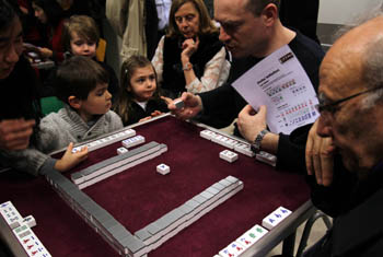 還沒走進活動室,遠遠就聽見一陣搓麻將的聲音;顒邮覂(nèi)支起了幾張麻將桌,法國麻將協(xié)會的老師正在教一些基本的麻將規(guī)則。學麻將的既有上年紀的法國老人,也有幾歲的法國孩子,他們一頭霧水、冥思苦想的樣子著實讓人忍俊不禁。