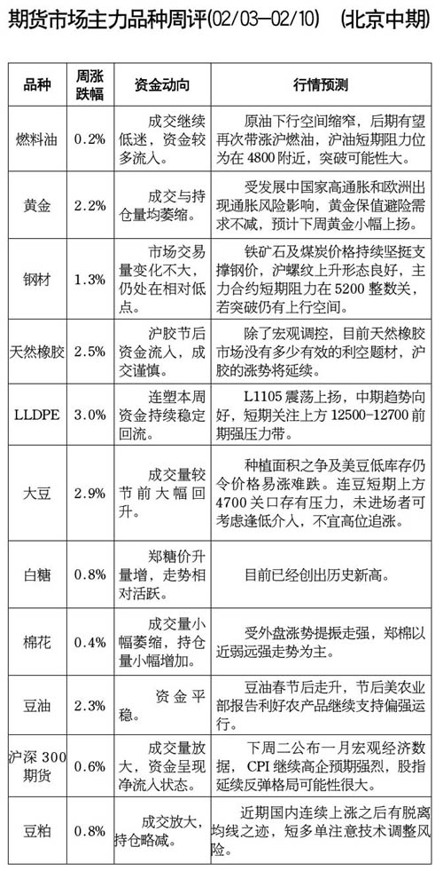 期貨市場主力品種周評[02.02-02.10]