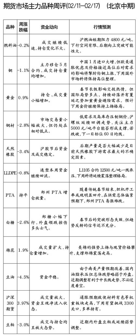 期貨市場(chǎng)主力品種周評(píng)[02.11-02.17]