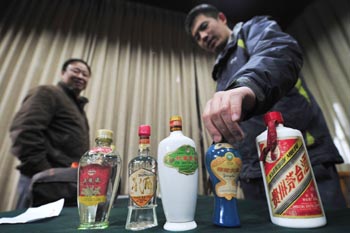 浙江杭州一拍賣公司舉辦的陳年國產(chǎn)名白酒免費(fèi)鑒定和公開征集活動吸引了數(shù)百位市民前來鑒定或委托拍賣!(新華社發(fā)) |