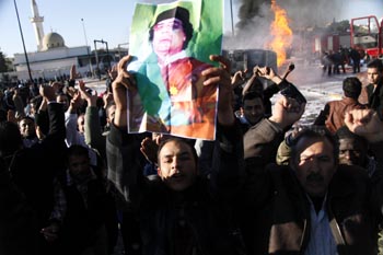 3月2日,在利比亞首都的黎波里,民眾游行呼吁國家恢復(fù)穩(wěn)定。新華社記者 張錳/攝 |