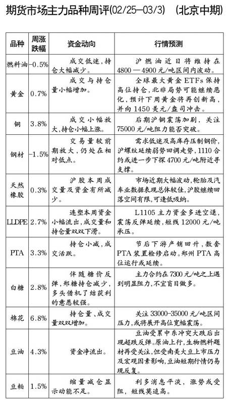 期貨市場主力品種周評[02.25-03.03]