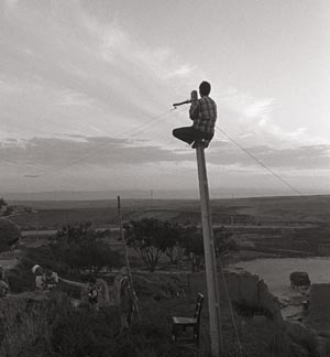 王征《最后的西海固 接電的漢子》 1998年攝 銀鹽紙基