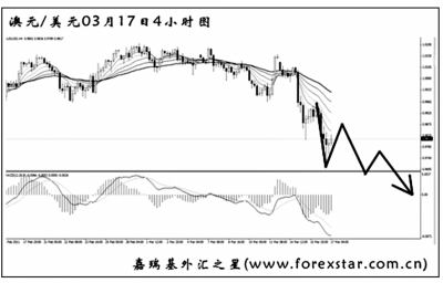 ▲澳元兌美元未能創(chuàng)出1.0255的新高,短線急速下行,階段性的頂部基本構(gòu)筑成功。從圖中看,澳元此波下跌的力度較強(qiáng),預(yù)計(jì)匯價(jià)再度轉(zhuǎn)為上漲的希望不大。日線圖道氏理論顯著低點(diǎn)的支撐在0.9535,在跌破此價(jià)格前,只可以小倉(cāng)做空澳元,待攻破此位置后再行加倉(cāng)不遲。