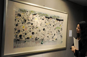 媒體預(yù)展上展示的吳冠中1980年所作《獅子林》,估價(jià)500萬至800萬港元。記者 宋振平/攝 |